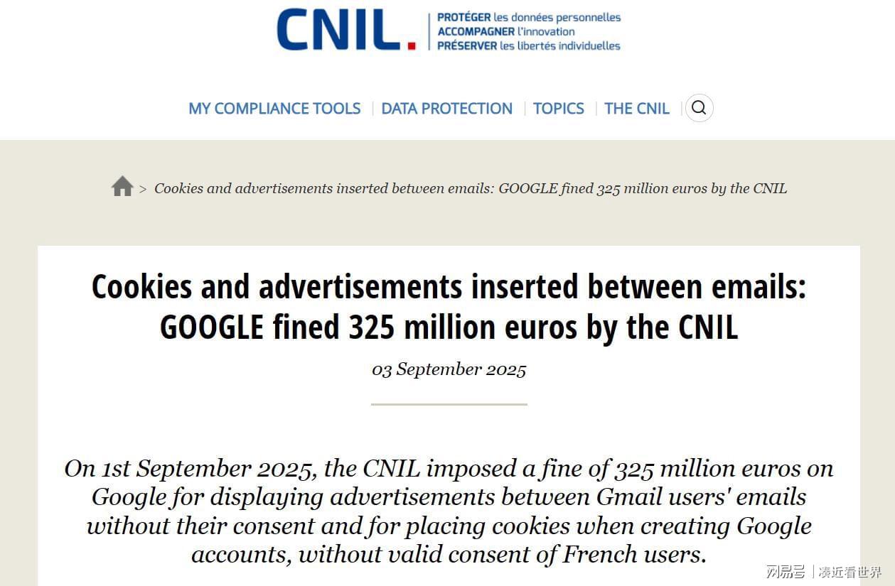 Google更夸张,这已是第三次栽在Cookie上。前两次2020年罚1亿欧,2021年罚1.5亿欧,这次直接翻倍到3.25亿。为啥罚这么狠?因为影响面太广:它在用户建Google账号时,没征得有效同意就放Cookie,涉及7400万个账户;连Gmail用户的邮件里插广告,也没问过用户同意,牵连5300万个邮箱。CNIL说,"这么大规模违规,罚款就得配得上"。